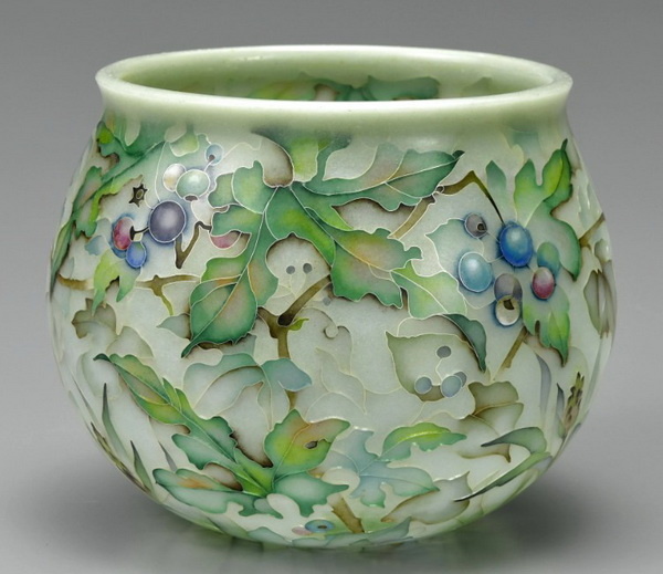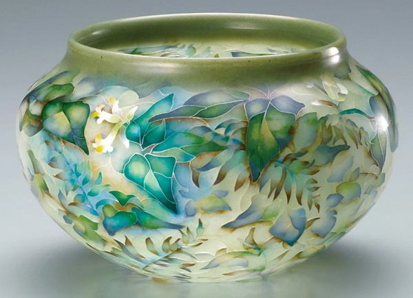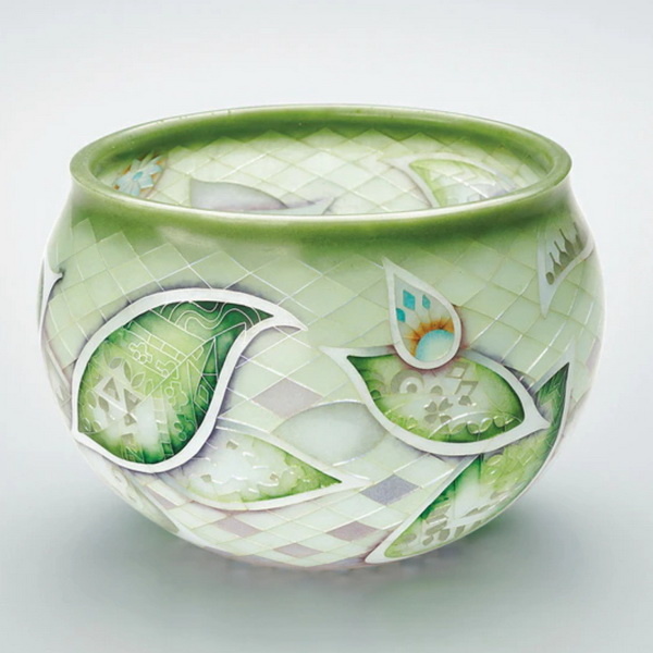Ваза «Зелень», Юкико Танэдзава, витражная эмаль, 2018 г.