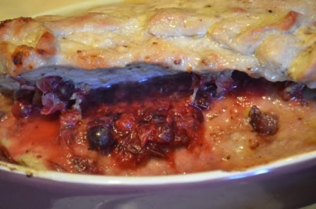 4. Сложить обратно мясо так, чтобы клюква была внутри и положить в форму для запекания. Отправить в духовку на 50 минут при 190 гр, при этом мясо надо накрыть фольгой.