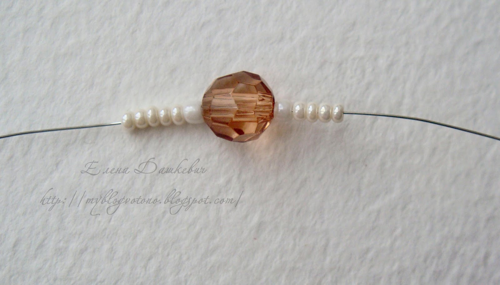 Отрезаем кусочек проволоки 15-20 см и нанизываем на нее бисер и бусинки: