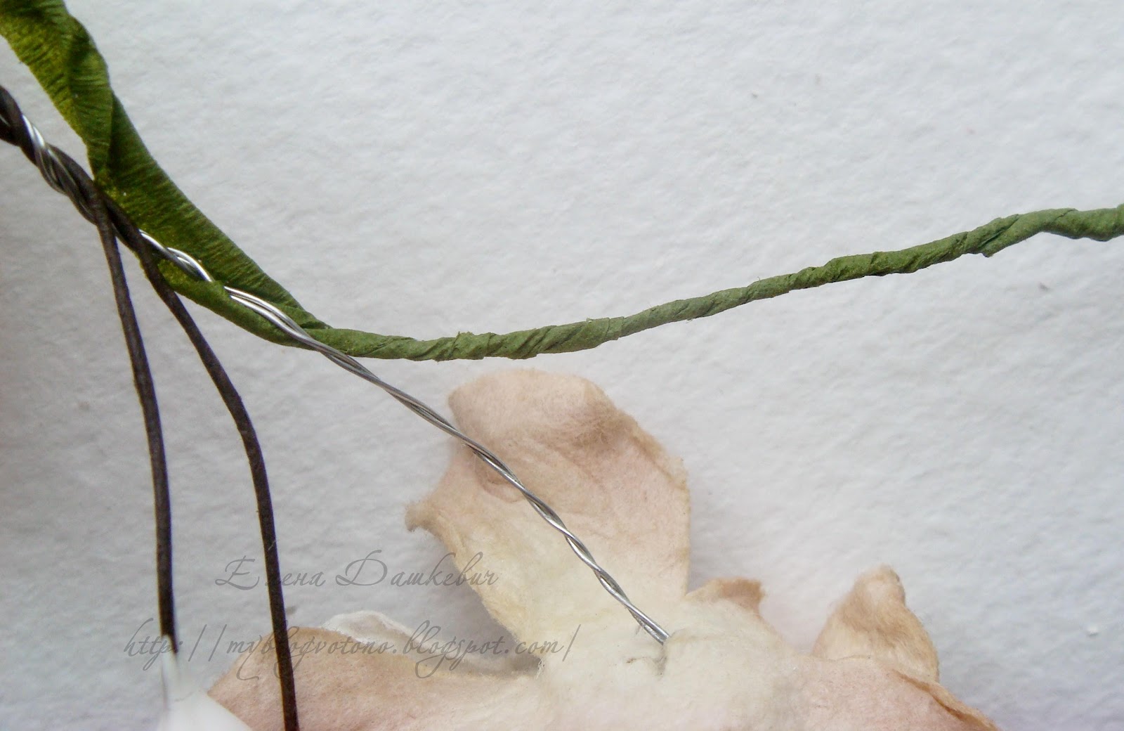 Скручиваем проволку и вставляем в цветочки: