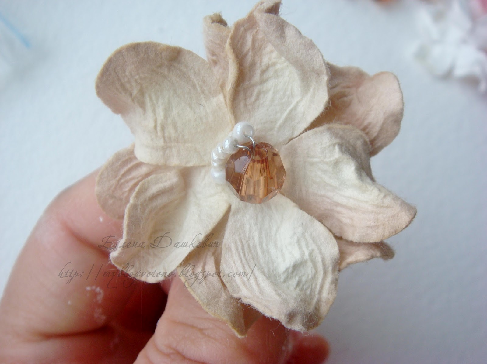 Здесь нужно склеить цветочки между собой и приклеить нашу серединку (клеем ПВА, моментом или горячим пистолетом).