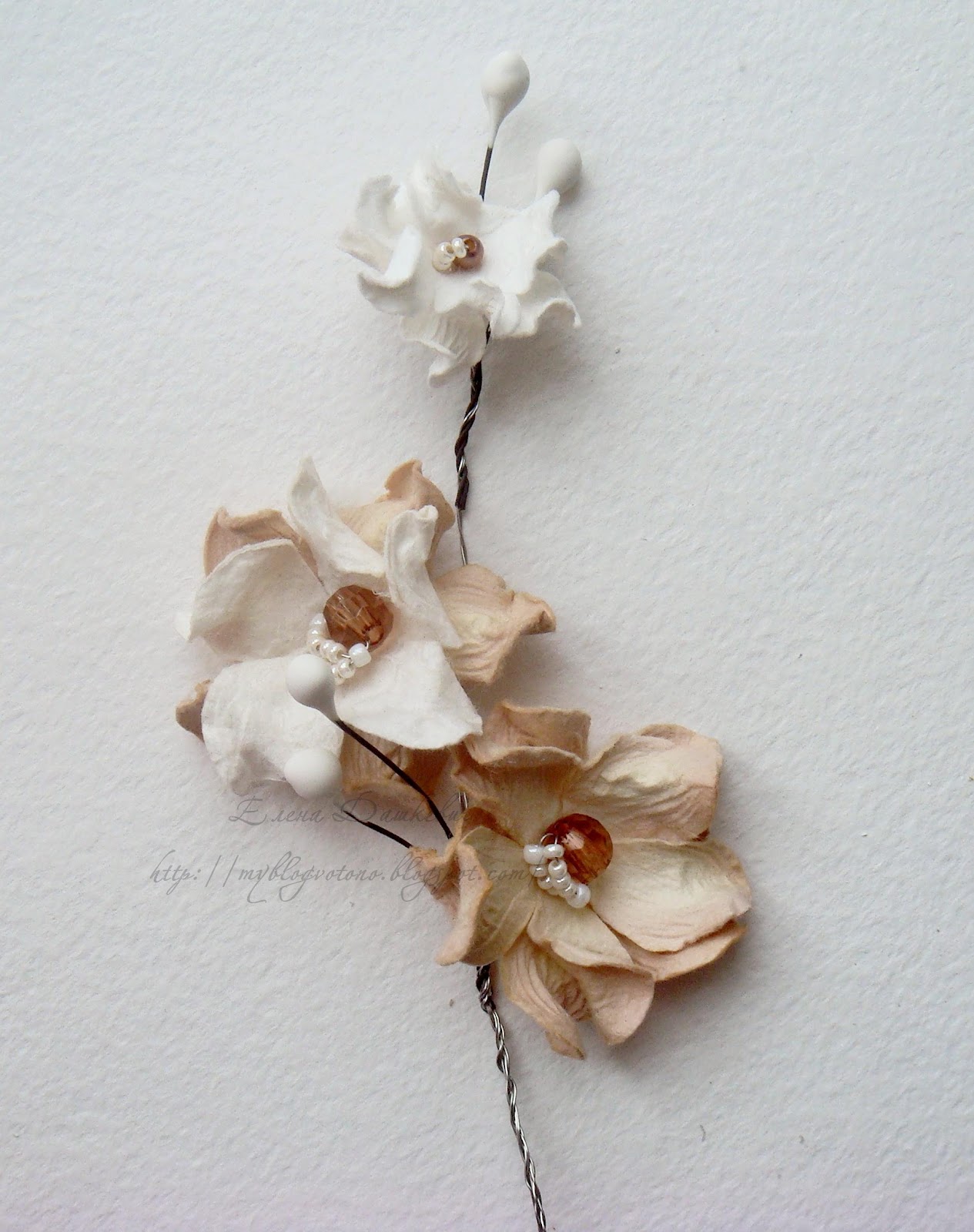 Дальше собираем их в веточку, добавляем тычинки, листики - все, что нам нравится: