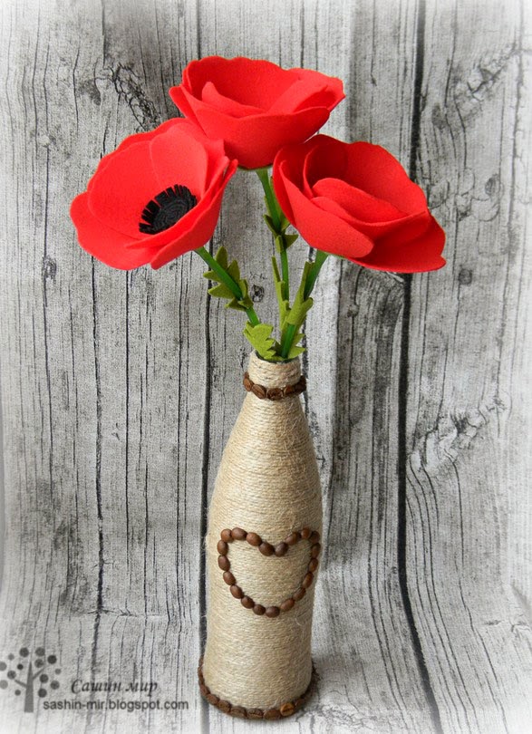 А теперь весь подарок - маки мы поставим в вазу Данькиного производства.