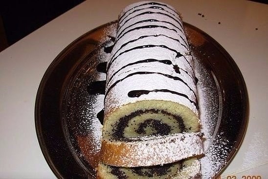 5 столовых ложек муки 5 столовых ложек сахара 5 столовых ложек сухого молока 3 яйца целиком 1/2 чайной ложки гашеной соды. Тесто разлить на застеленный пергаментом или фольгой противень. Выпекать 10 минут. Горячим смазать приготовленной начинкой (джем,повидло,сгущенка с маком...что есть!) и плотно свернуть при помощи полотенца. После остывания присыпать сахарной пудрой. Приятного аппетита!