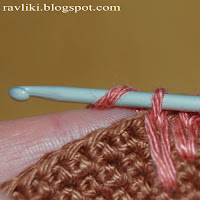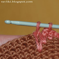 Вводим крючок под обе стенки верхнего столбика. (Если при этом петля "зубчика" перекручивается, то надо снять ее с крючка и подхватить с другой стороны, чтобы легла ровно.)