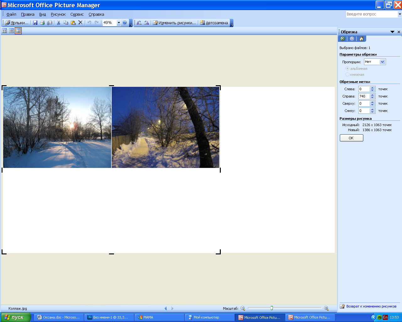 Аналогичную операцию проводим со вторым фото. Если нам нужен просвет между ними, то двигаем их обычными кнопками на клавиатуре со стрелками вправо-влево. Двигается только то фото, которое в активном в слое.