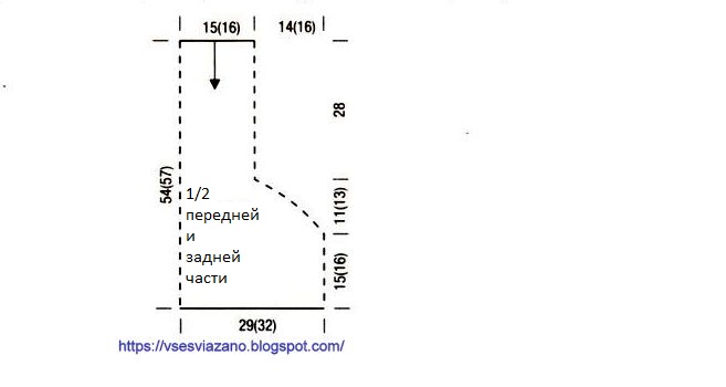 Оплечье-шарф-снуд вяжется сверху вниз по кругу. Стрелка на выкройке показывает направление вязания. Он вяжется с воротника - вниз!!!
