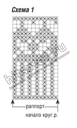 Затем продолжить вязание лицевой гладью по кругу узором по схеме 3. Когда будет связано по крайней мере 38 см узора, закончить вязание по схеме перед 1-м рядом с убавками, начать убавки.