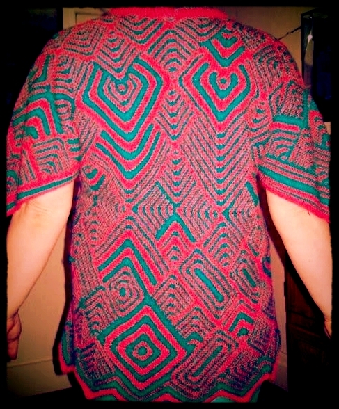 Это будет спинка.А передok пусть будет из двух несимметричных частей.Не хочу разрезать пополам центральный крупный ромб-- так как в нем и вся красота!