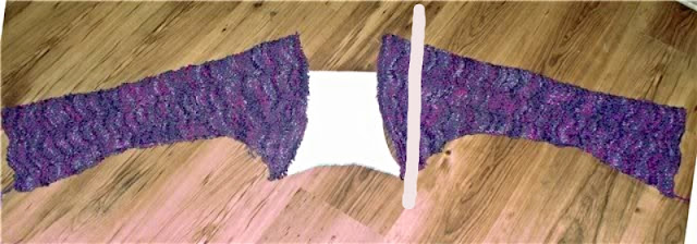 Там, где отчёркнута белая полоса-там заканчивается рукав и начинается полочка.Фактически, полочки почти нет.Маленькая ''частичка'' составляет 1/5 ширины переда.Но за счёт этой ''частицы'' шраг хорошо удерживается на плечах.
