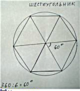 каждый вершинный угол равнобедренного треугольника = 60 градусов Но нас будет интересоватьугол при центре Их будет 3 по 120 градусов каждый