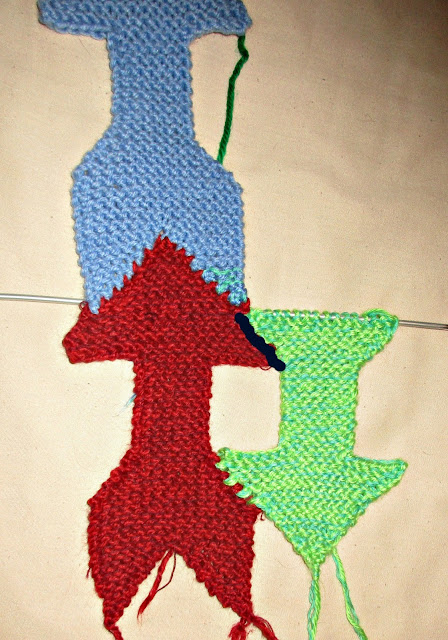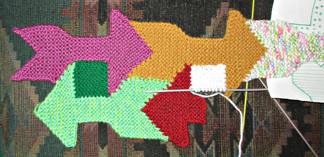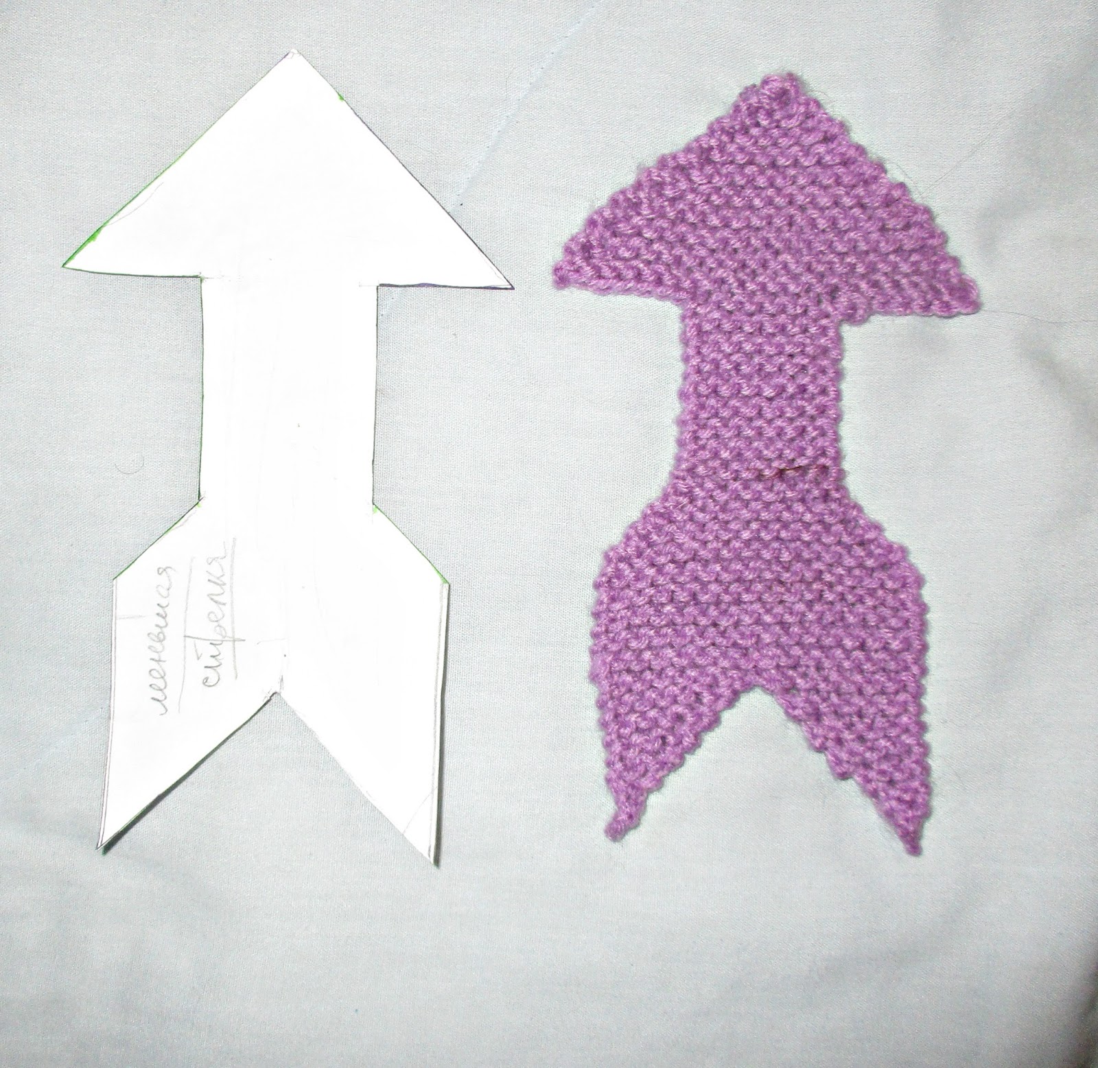 Следующая полоса должна в ходе вязания пристыковываться к уже связанной полосе. Эта пристыковка будет производиться -''бедром'', и частично-''вершинкой''.