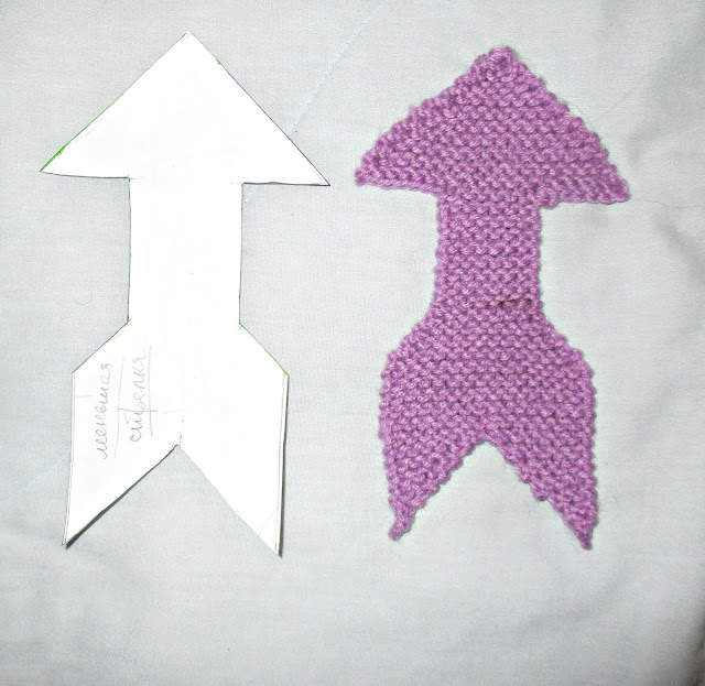 Левый ''хвостик'' вяжем также,но делая пристыковку, вытягиванием в конце лицевых рядов-дополн. петлю из края.