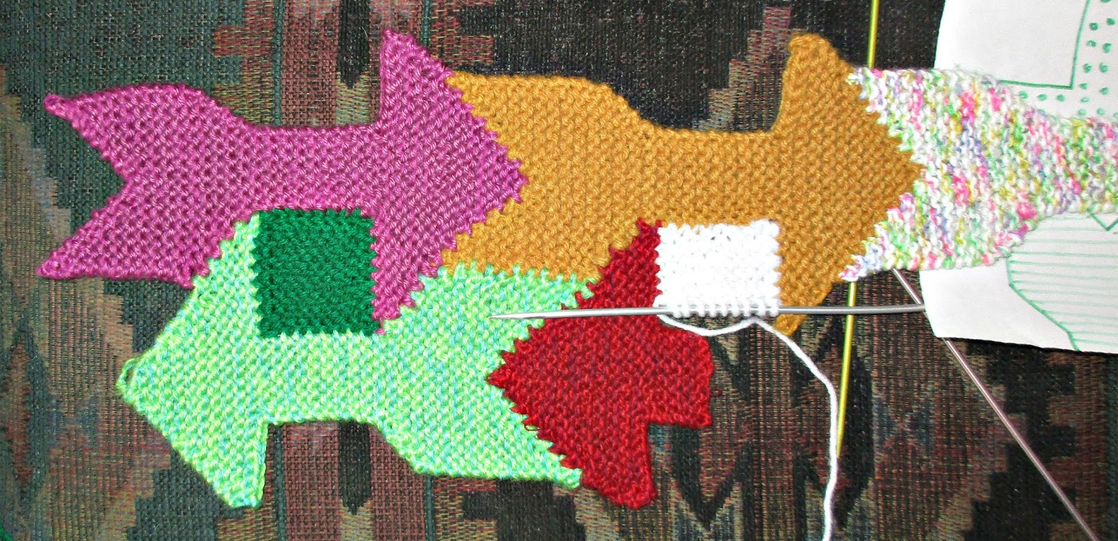 После этого я решила, что возиться со сшиванием мотивов и полос-это утомительно. Лучше будет вязать одеялко методом пристыковки деталей друг к другу уже в процессе вязания: