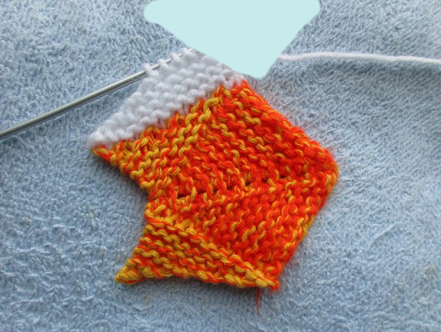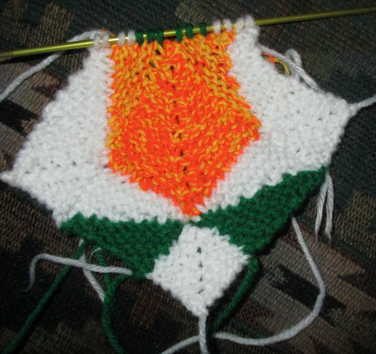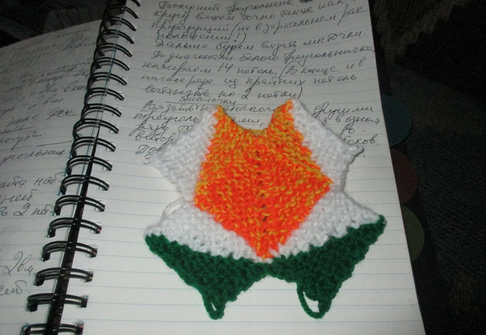 Дальше будем вязать белые треугольники-вокруг оранжевого мотива.