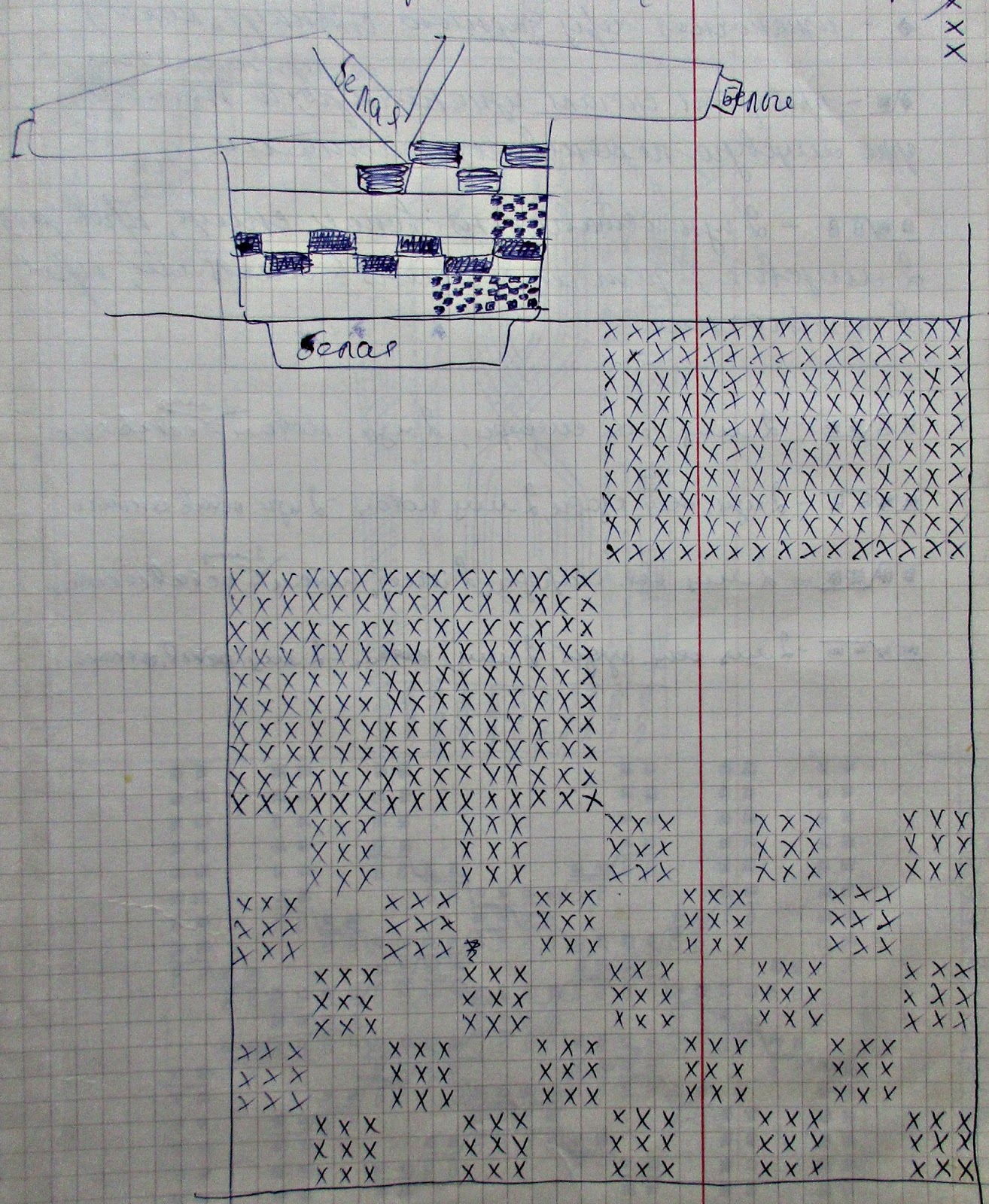 А этот вариант узора, тоже самопридуманного,я вязала на заказ пожилой женщине. У неё было 2 цвета пряжи. Как раз хватило на свитер: