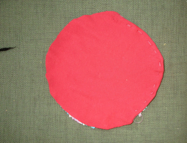 Вырезаем из трикотажа форму, соответствующую Вашему мотиву. У меня это-квадрат и круг. Если трикотаж хотя бы немного сыплется, лучше его подогнуть намёткой на 5-7 мм внутрь.Затем положив на мотив начать его стыковывать вместе крючком, прокалывая оба слоя и вывязывая петли полустолбиком.