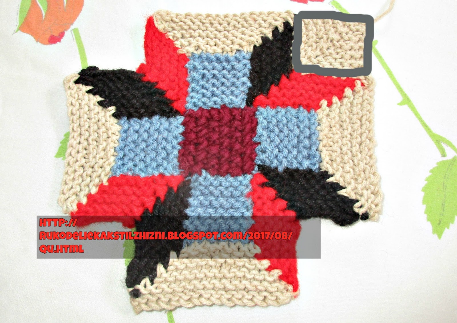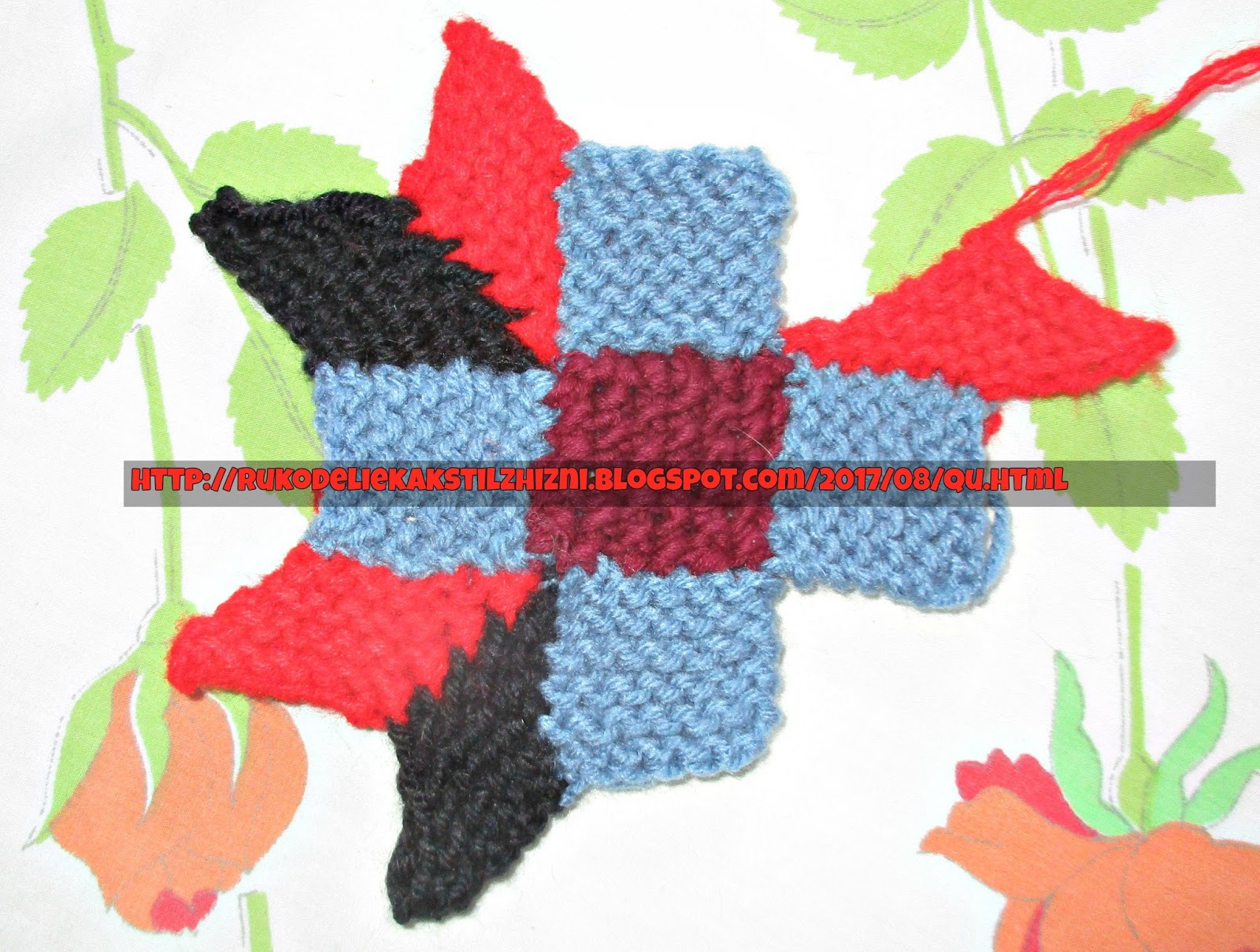 А дальше заполняем уголки методом пэчворковского квадратика, набрав по 2-м стенкам параллелограммов-8+8=16 петель.