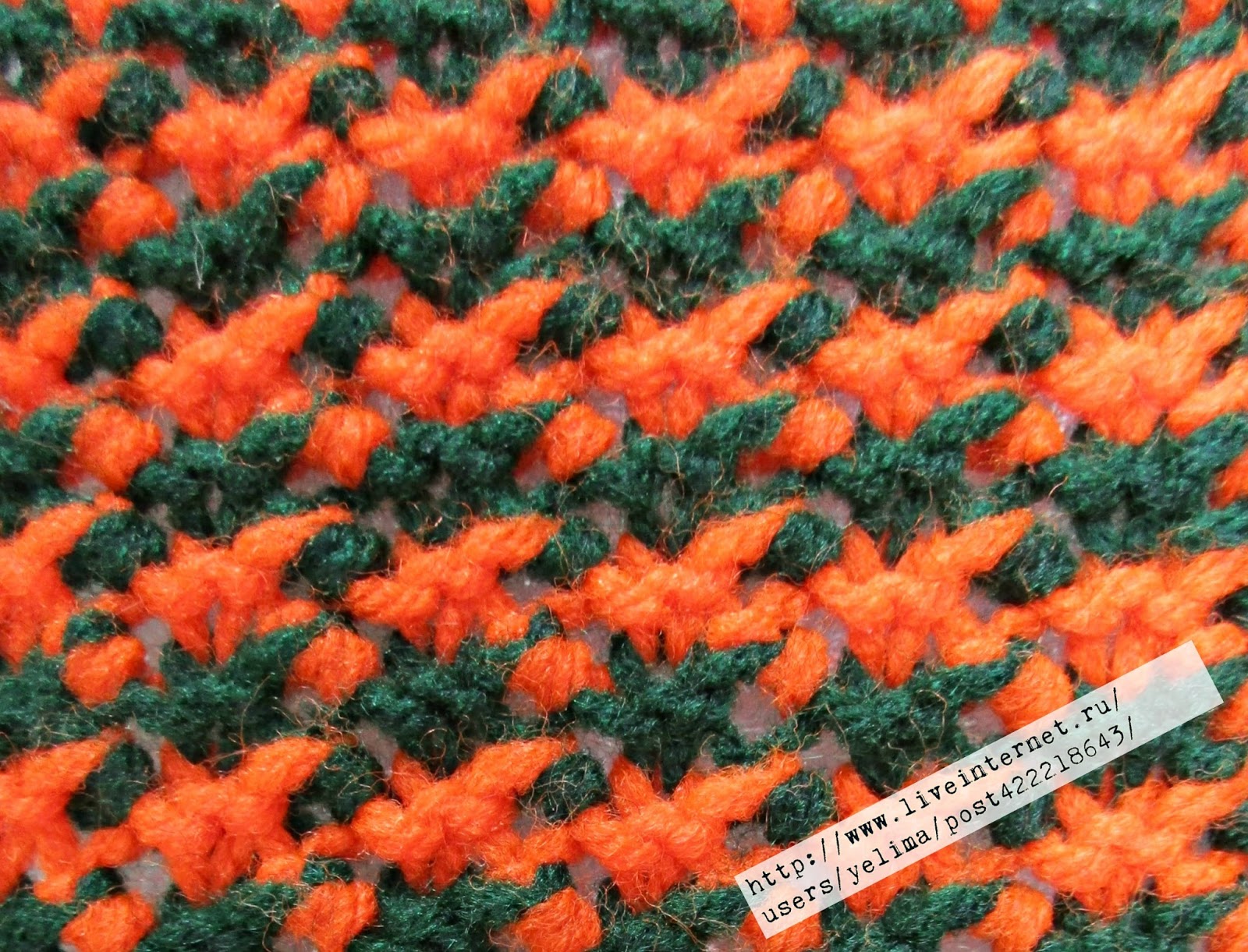 УЗОP N 2- точно также, как и узор-1, только 2 вместе провязываются везде за передние стенки.