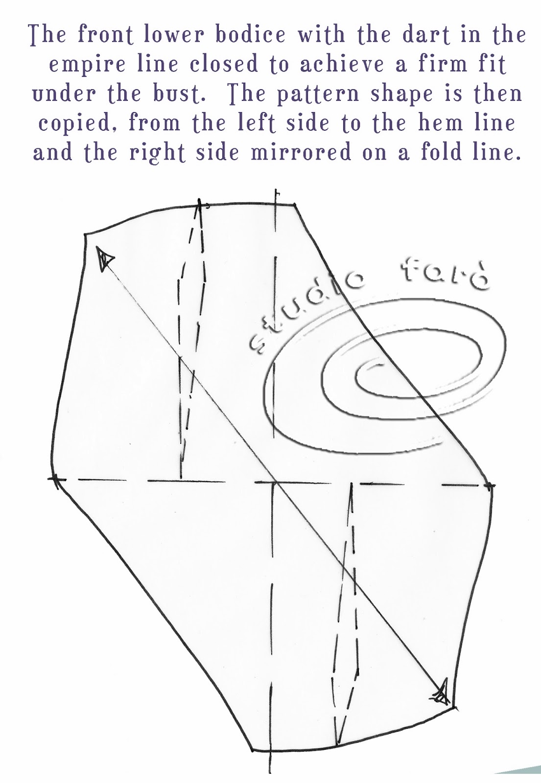 Наш дизайн признакам ниже имеет один поворот в передней лиф, построенном на стыке задней драпировка на передней подол и два куска обратно для поддержания посадку империи, которая держит бюст поворот на месте. Пожалуйста, обратите внимание, что модели назад являются небольшое отклонение от субботам шаблонов форм. Убирая этот блог вместе, я понял, необходимость ужесточения посадки в спину. Единственный способ добиться этого заключается в дальнейшем шов империи до задней.