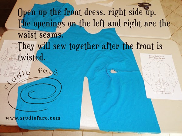 Откройте переднюю часть платья, правой стороной вверх. Отверстия на левой и правой являются талии швы. Они будут сшивать после передняя закручивается.