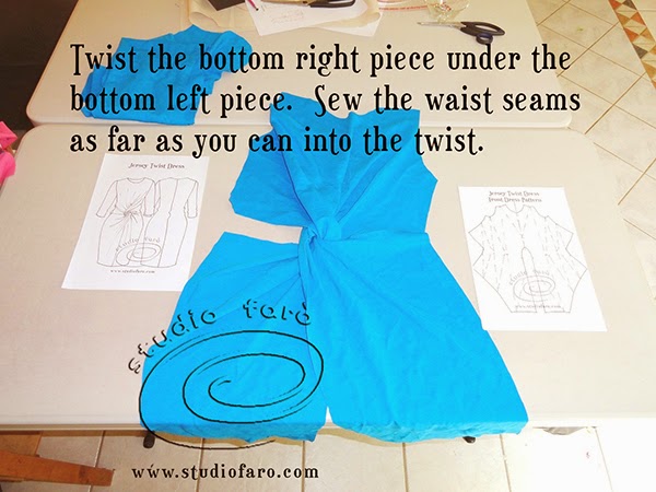Поверните правый нижний кусок в нижнем левом кусок и снова. Сшейте талии швы, насколько вы можете в поворот.