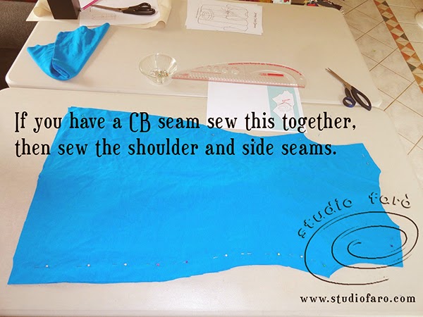 Если у вас есть CB шов, шить это вместе, затем сшить плечевые и боковые швы.