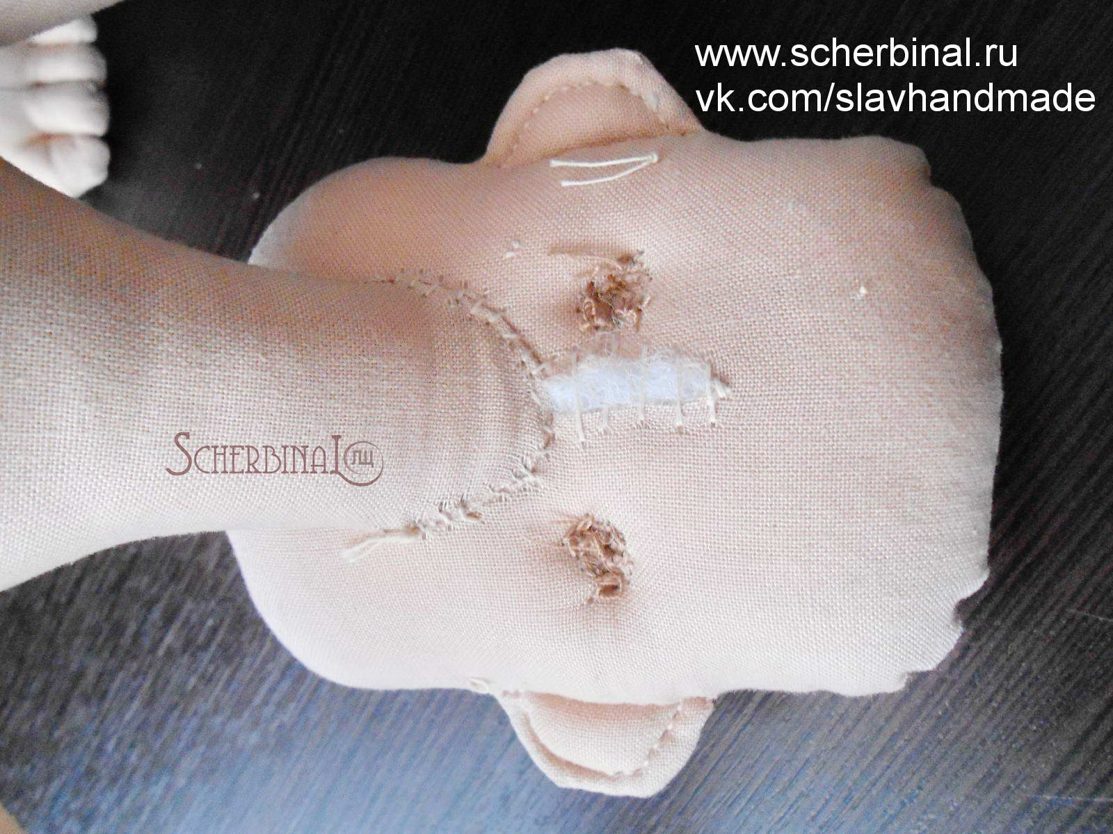 Прикладываем к лицу, выбираем носику место и пришиваем: