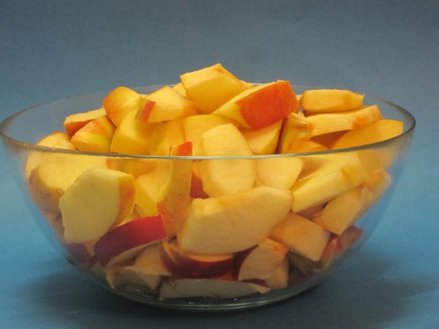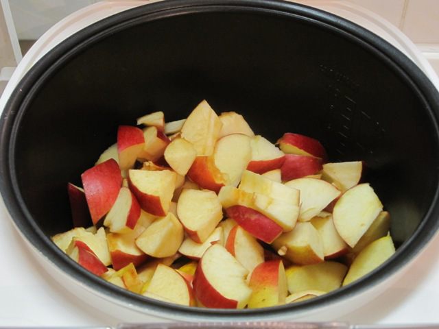 Нарезать яблоки дольками.