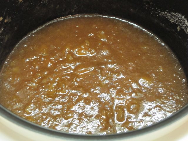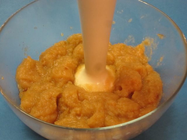 После отключения программы горячую массу выложить в стеклянную посуду и пробить погружным блендером до состояния пюре.