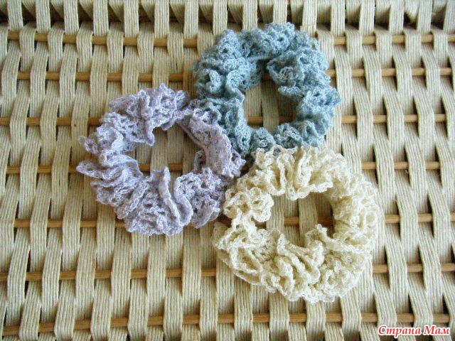 http://maizehutton.blogspot.com/2010/04/crocheted-scrunchie-tutorial.html можно найти оригинальное описание с пошаговыми фото-инструкциями.