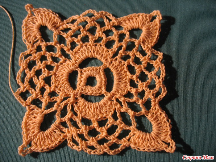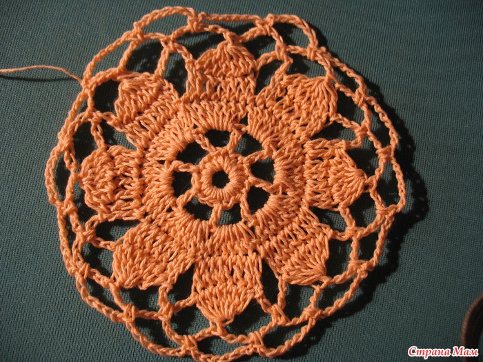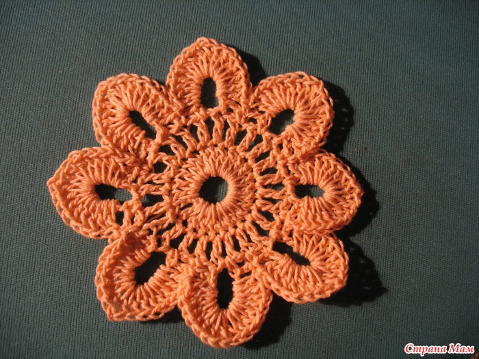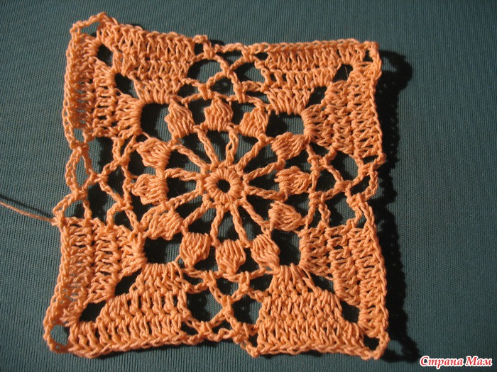Схему для украшения сумки я выбрала, но думаю, что связанные элементы пригодятся кому-нибудь ещё. Сначала идёт связанный элемент, затем -- схема.