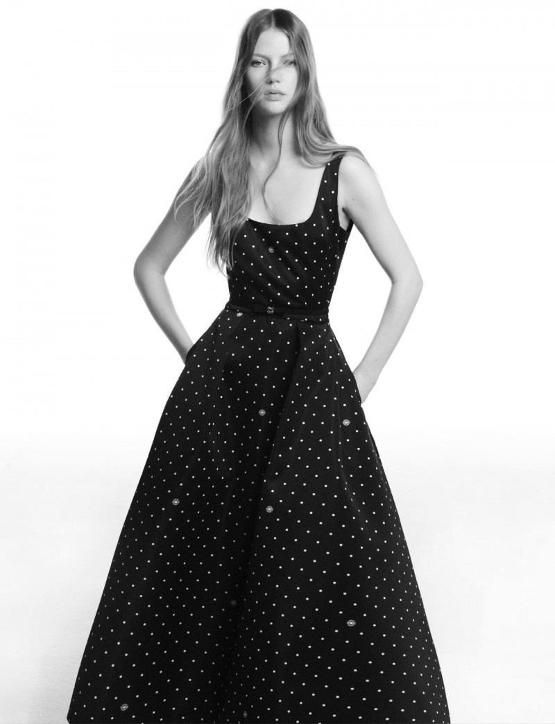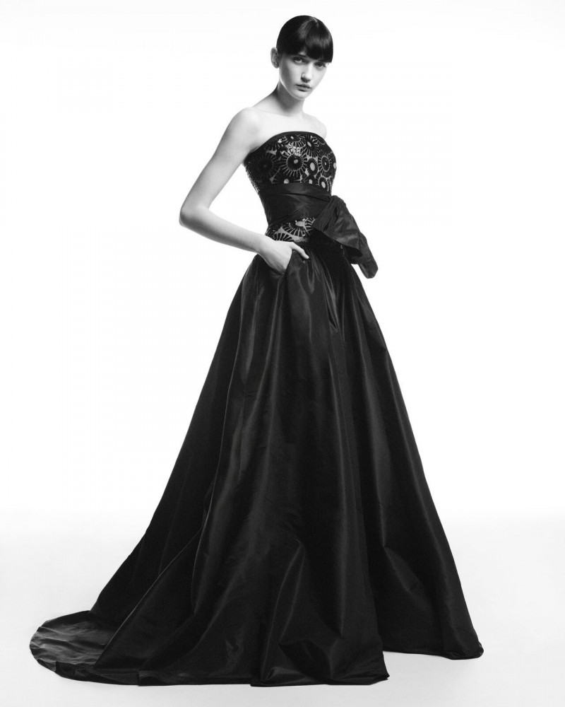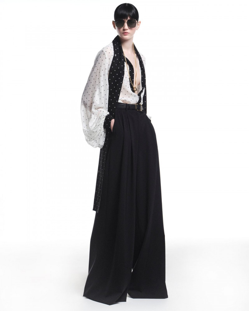 Главная прелесть коллекции в архитектуре линий: Saab смело работает с пропорциями. Его любимая техника, подчёркнутая талия и свободный низ, трансформируется в новые формы. В коллекции мы видим асимметричные подолы, объёмные рукава, обнажённые плечи, изогнутые лифы, ниспадающие на спину. Уверенно, страстно и тонко, как дирижёр с партитурой, кутюрье играет с кроем. Здесь лёгкие, почти эфирные платья сменяются твидовыми ансамблями с ровной геометрией. Тонкие ремни обвивают талию, изящно подчёркивая силуэт, но при этом не навязываясь, а лишь акцентируя уверенность и внутреннюю собранность героини Saab.