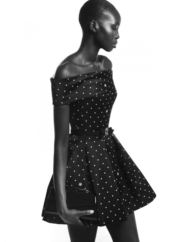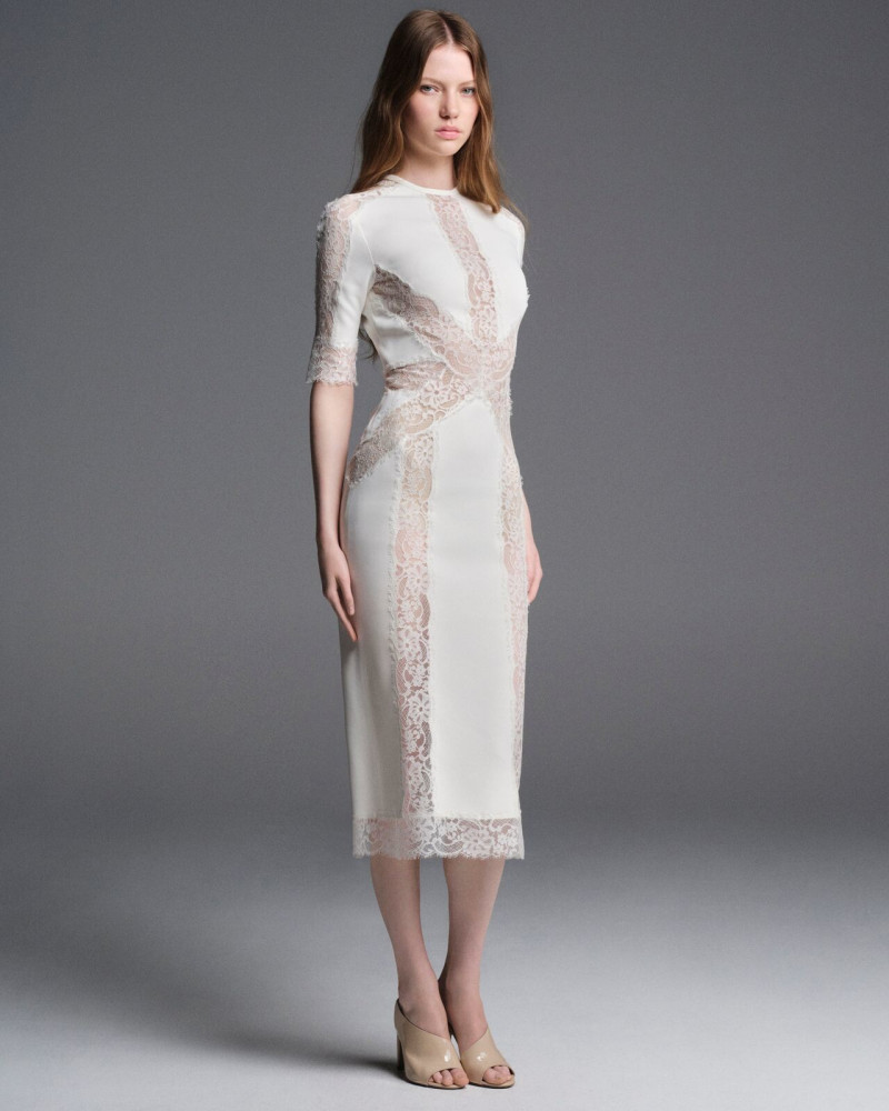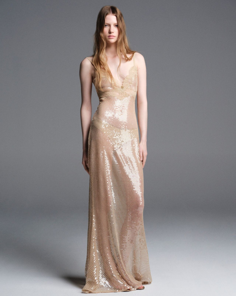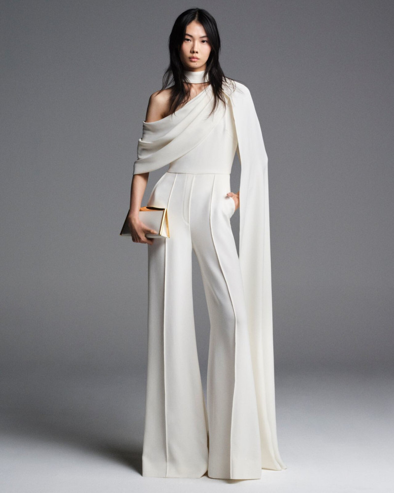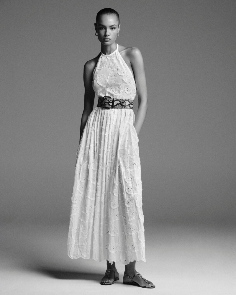 Elie Saab понимает, что мода давно перестала быть только про одежду. Она о состоянии души, о языке жестов, взгляда, походки. Его Resort 2026 манифест о том, что женственность одновременно может быть громкой и молчаливой. Один из образов, миниатюрное белое платье с вышитым бисером и летящим кейпом, настойчиво вызывает в памяти сцены из фильмов Феллини. Женщина, идущая по солнечной улице, вся в свете, в движении и ореоле тайны. Здесь Saab предельно кинематографичен.