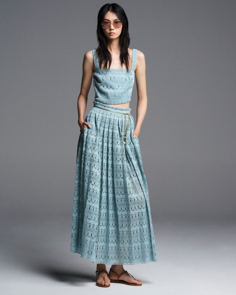 Коллекция явно создана для женщин, путешествующих. Это гардероб для тех, кто завтракает в Каннах, обедает в Бейруте, а ужинает под открытым небом на вилле в Амальфи. Saab предлагает не просто одежду, а чувство роскоши, вплетённой в ткань повседневности. Особого внимания заслуживают аксессуары — тонкие ремешки с золотыми пряжками, миниатюрные сумки, будто резные шкатулки, и сандалии, украшенные филигранной вышивкой. Они словно заключают каждый образ в изысканную рамку, добавляя финальный аккорд к визуальной симфонии, завершающий повествование.