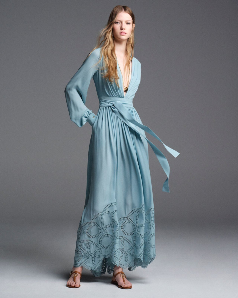 Коллекция словно снята на плёнку с мягким фокусом: свет рассеивается, очертания плавятся, ткани будто плывут, отражая солнечные блики. Вдохновением для Saab, по всей видимости, послужили образы из золотой эры Голливуда и миражи восточной архитектуры. Источники столь же возвышенные, сколь и доступные через его призму.