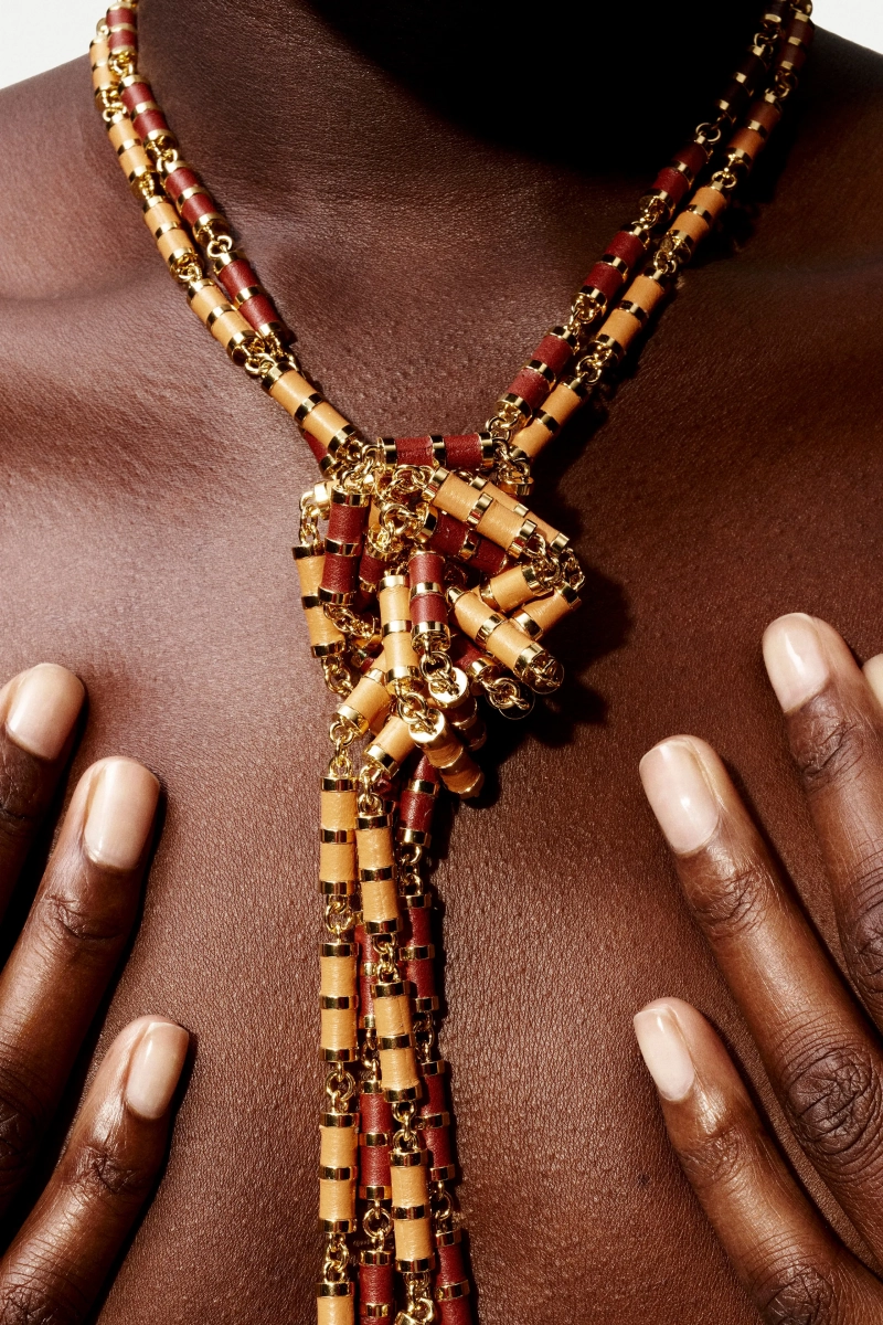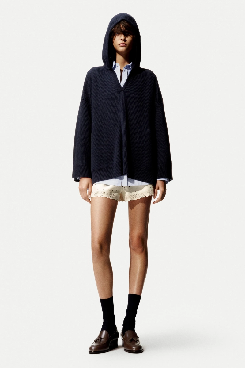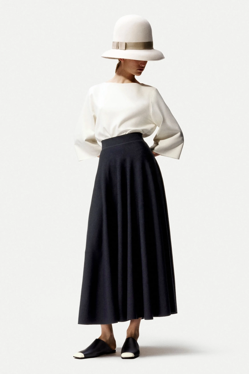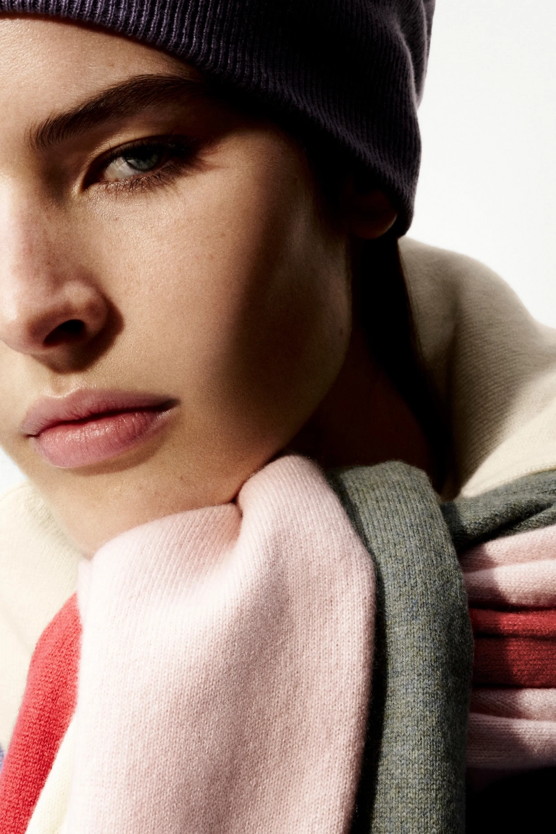 Нейтральные оттенки оставались основой, представленными кашемиром, шелком, мериносовой шерстью и смесью льна, но всплески красного, бархатного, бирюзового и сиреневого нарушали спокойствие удивительной яркостью. Это цветовое расширение наиболее четко проявилось в библиотеке кашемировых трикотажей, охватывающей шестнадцать оттенков, задуманных как универсальные слои, которые легко могут вписаться в гардероб.