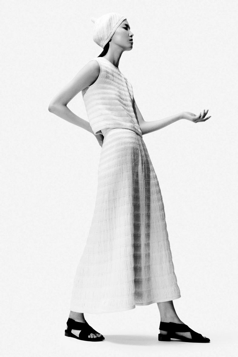 Силуэт и конструкция подчеркивали ленивую лёгкость. Пиджаки с шалью или из легчайшей твидовой ткани сохраняли плавность кроя, не обременённого жесткостью, в то время как расчесанные альпака-пальто и воздушные чиносы выражали расслабленное летнее настроение. Вязаные вещи служили связующим элементом в мужских и женских гардеробах, их текстуры варьировались от открытых кос до деликатных шелковых смесей.