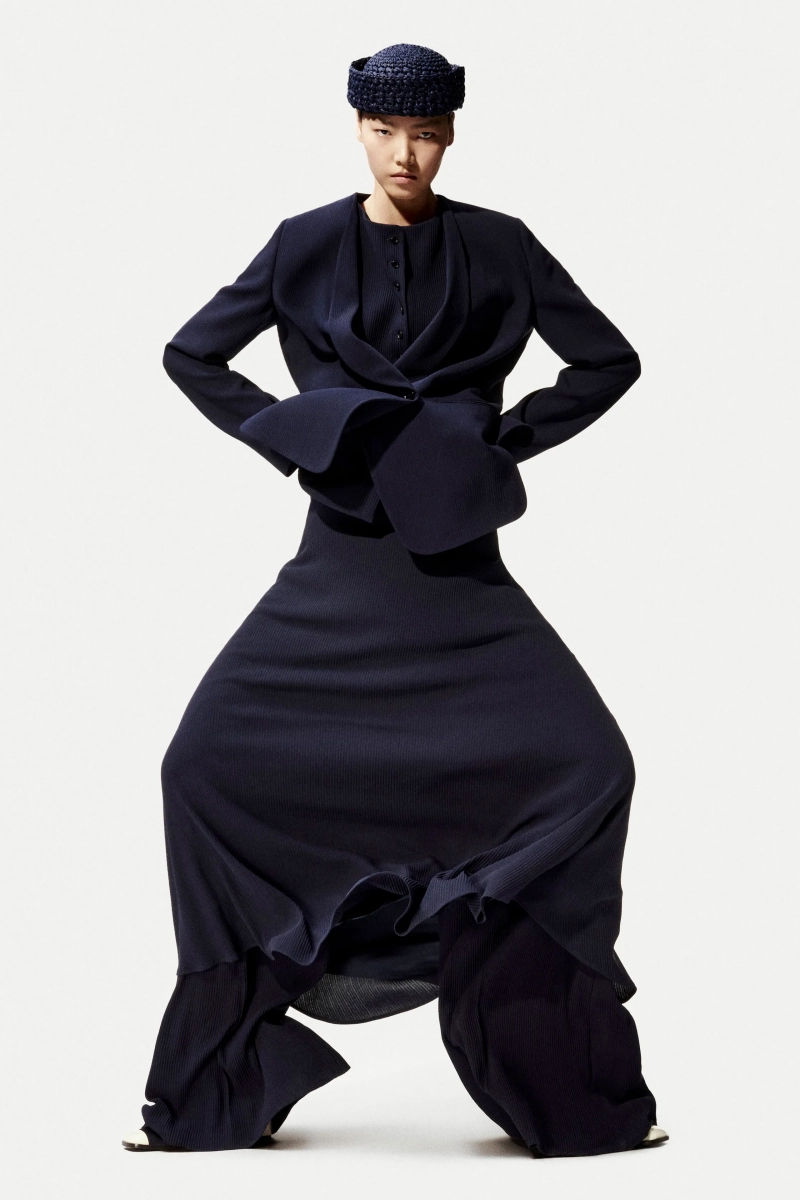 Ремесло нашло моменты эксцентричности в вечерних ансамблях с бахромой и жилетах, аккуратно вышитых для наложения на легкие трикотажи. Принты также расширили язык: акварельные цветочные узоры и морские мотивы смягчили женское предложение, в то время как мужская линия демонстрировала внешность с техническими куртками в морском стиле, сочетающимися с полосками мариниère.