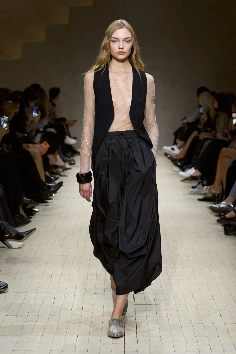 Сильвана Армани, племянница Джорджио и руководитель женской линии Emporio, заявила, что не станет выходить на поклон. Это всё ещё было его шоу — его момент. Аплодисменты превратились в бдение, коллективный акт памяти. Первоначально запланированная как часть празднования 50-летия Armani, программа этого сезона была переработана после его смерти в двойное прощание: Emporio сегодня днем, Giorgio Armani в это воскресенье. Вместе они образуют его arrivederci. Если воскресный вечерний показ станет великой мемориальной церемонией, то Emporio был трогательным прологом — интимным, эмоциональным и несомненно Армани.