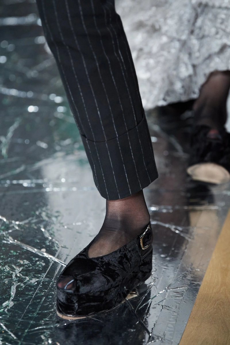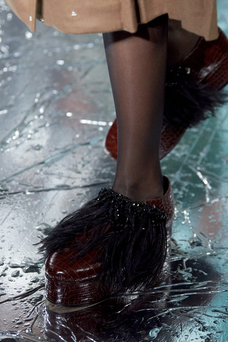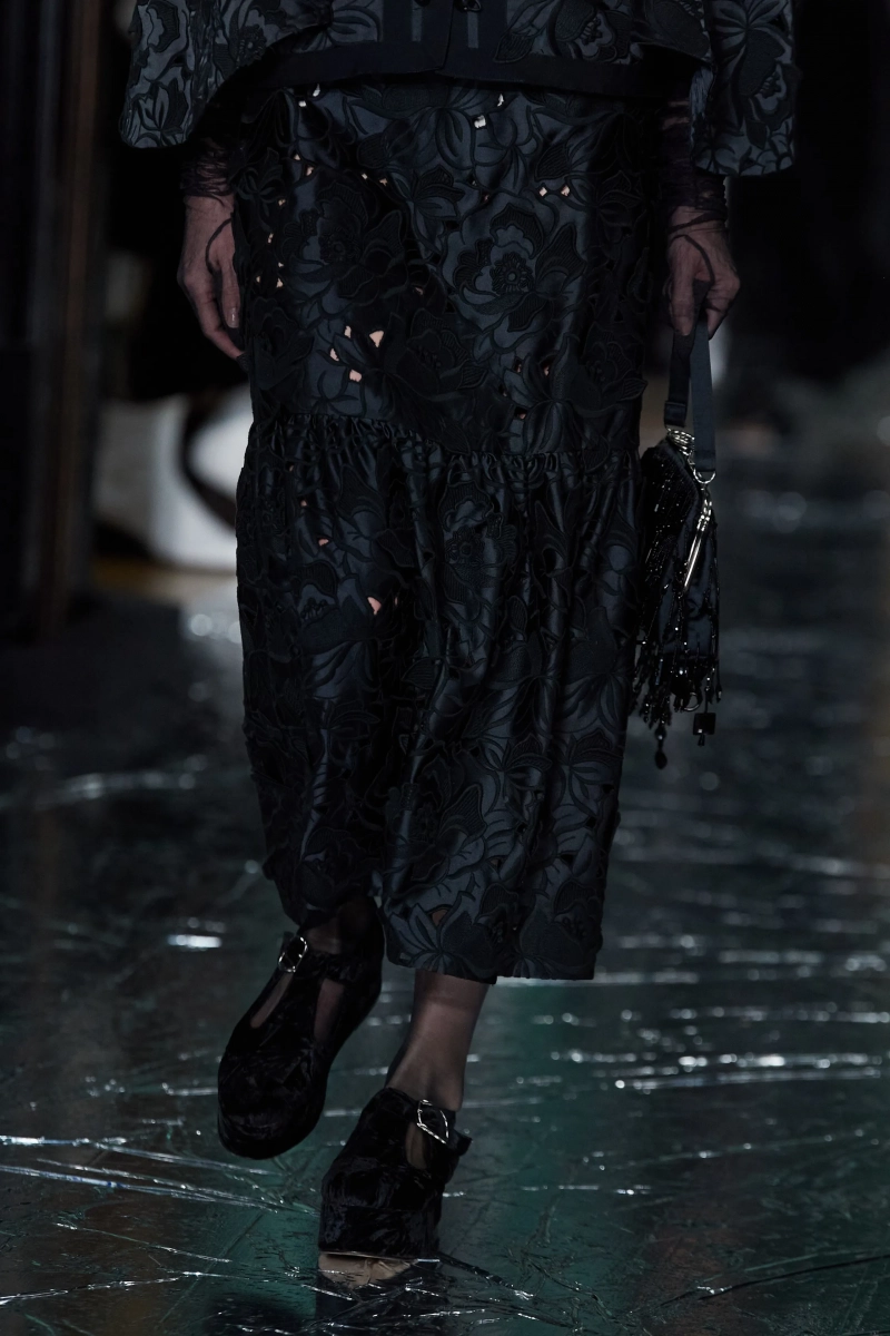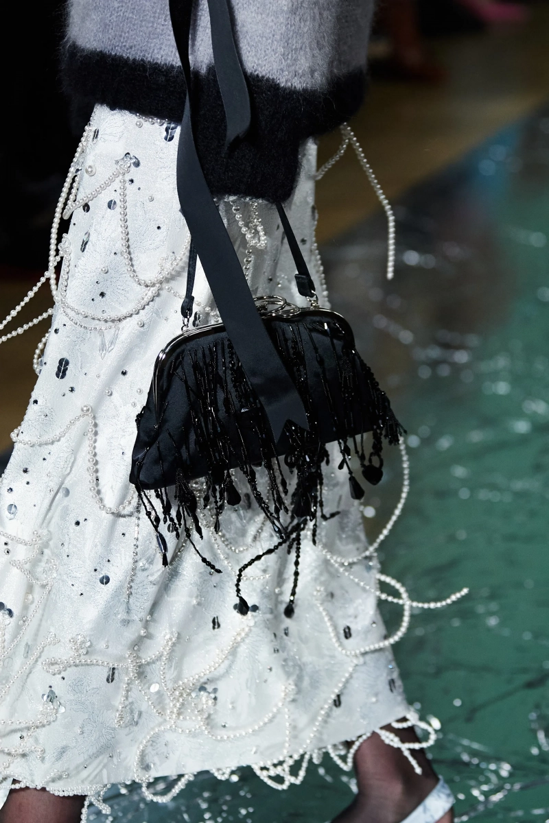 Не могу сказать, что я в полном восторге от этой коллекции, но нельзя не отметить чудесную работу с тканью. Прозрачная чёрная юбка с пиджаком с принтом в стиле Ар Деко смотрится просто потрясающе. Также пальто из искусственного меха в паре с брюками песочного цвета в крапинку выглядит весьма эстетично и по-английски. И кстати, обратите внимание, как интересно смотрится роскошная юбка со стеклярусом вместе с простым свитером.