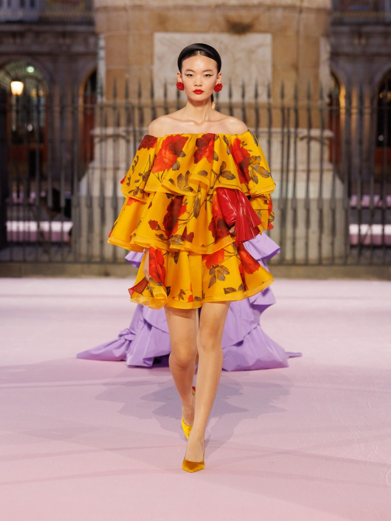 Креативный директор Уэс Гордон для весенне-летнего шоу отправился с командой и гостями в Мадрид, чтобы, с его же слов, укрепить связь бренда с испанской культурой. В качестве локации выбрали площадь XVI века Пласа-Майор, где соорудили 450-метровый подиум. Его даже выкрасили в фирменный розовый Carolina Herrera.