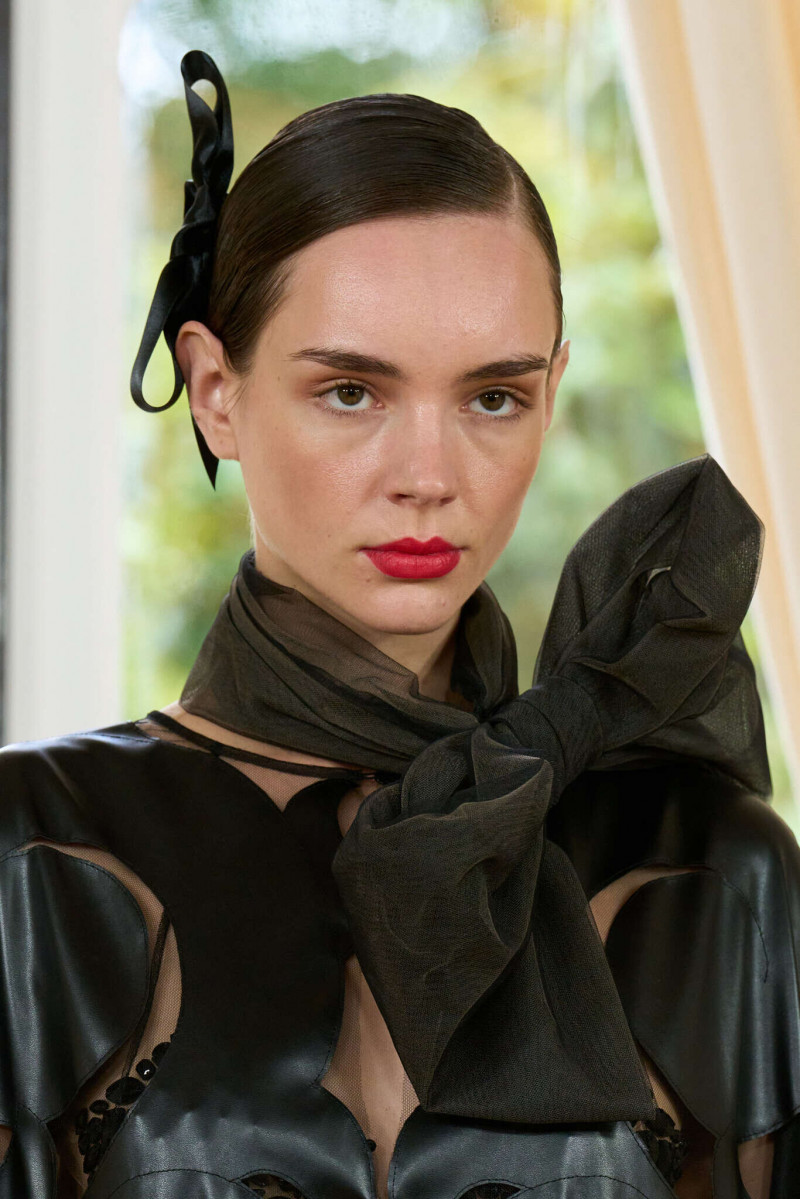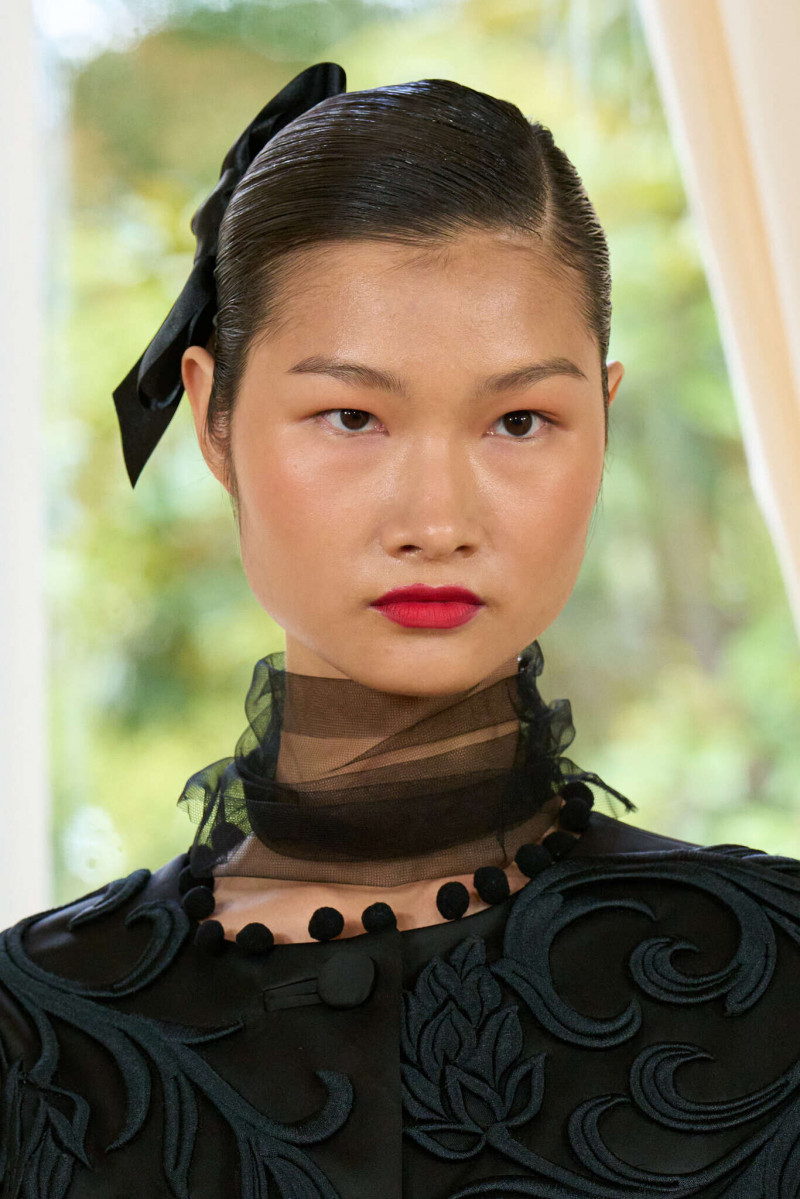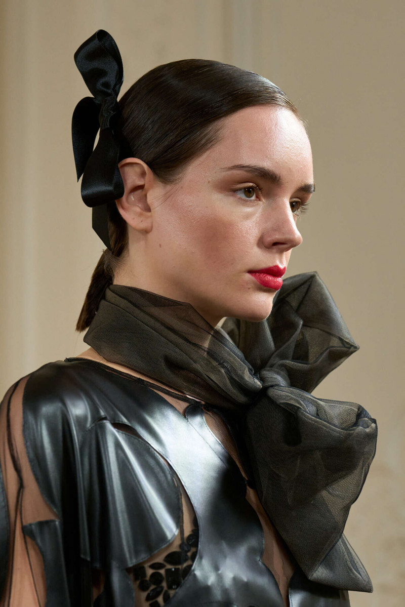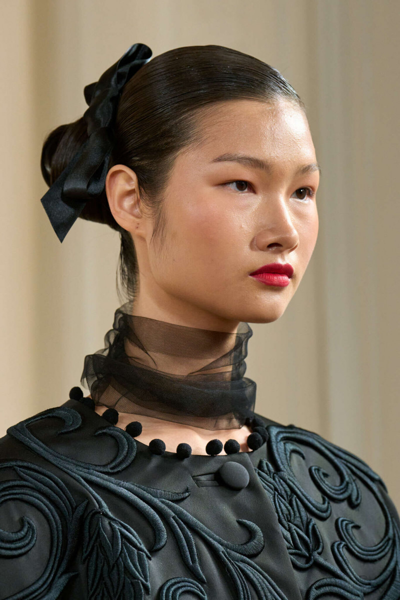 В этом сезоне дизайнеры бренда сосредоточились на двух цветах: черном и белом — практически вся коллекция состоит исключительно из них. Главным акцентом новой коллекции стал орнамент, напоминающий русский народный. Среди других ключевых деталей: обилие перьев и глубокие вырезы.