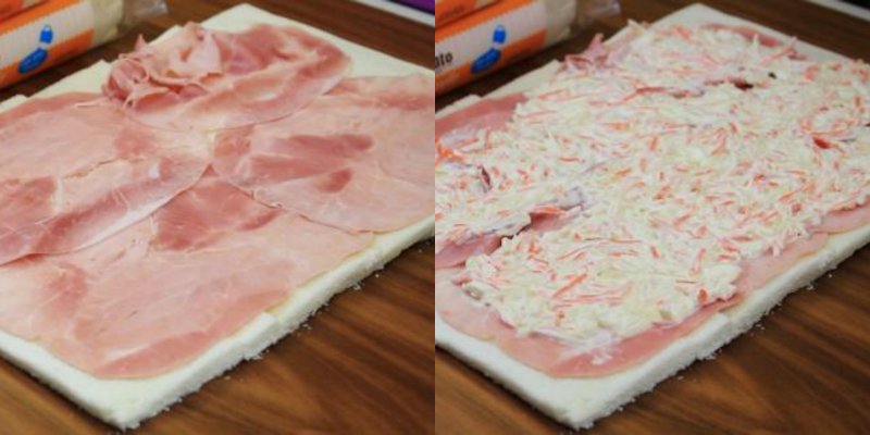 Состав начинки вариативен: ветчину заменяйте на салями, консервированный тунец или слабосоленую семгу. Добавляйте по желанию душистую зелень, сочные листья салата, овощи.