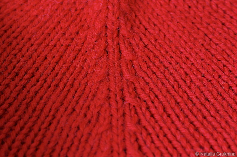 Совет: широкую часть кокетки удобно вязать на двух парах круговых спиц: один ряд провяжите на первую пару спиц, а следующий - на вторую и т.д.
