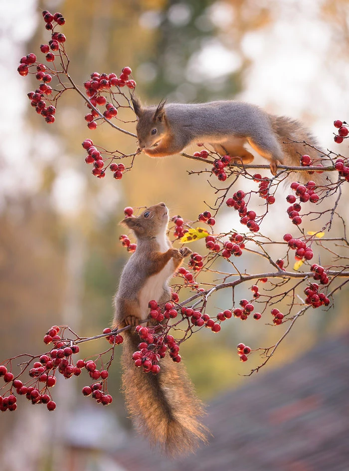Первой "моделью" Веггена, кстати, была вовсе не белка, а лиса. Она 6 лет назад подошла к балкону фотографа, и он начал ее подкармливать. При каждой их встрече он делал снимки.