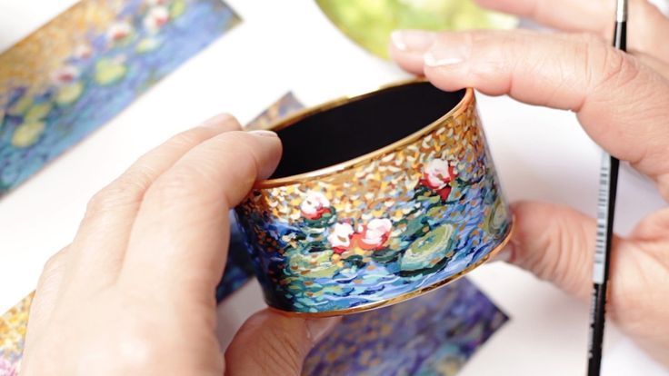 Художник наносит до 20 оттенков эмали вручную, слой за слоем. Иногда добавляют 24-каратное золото для сияния.