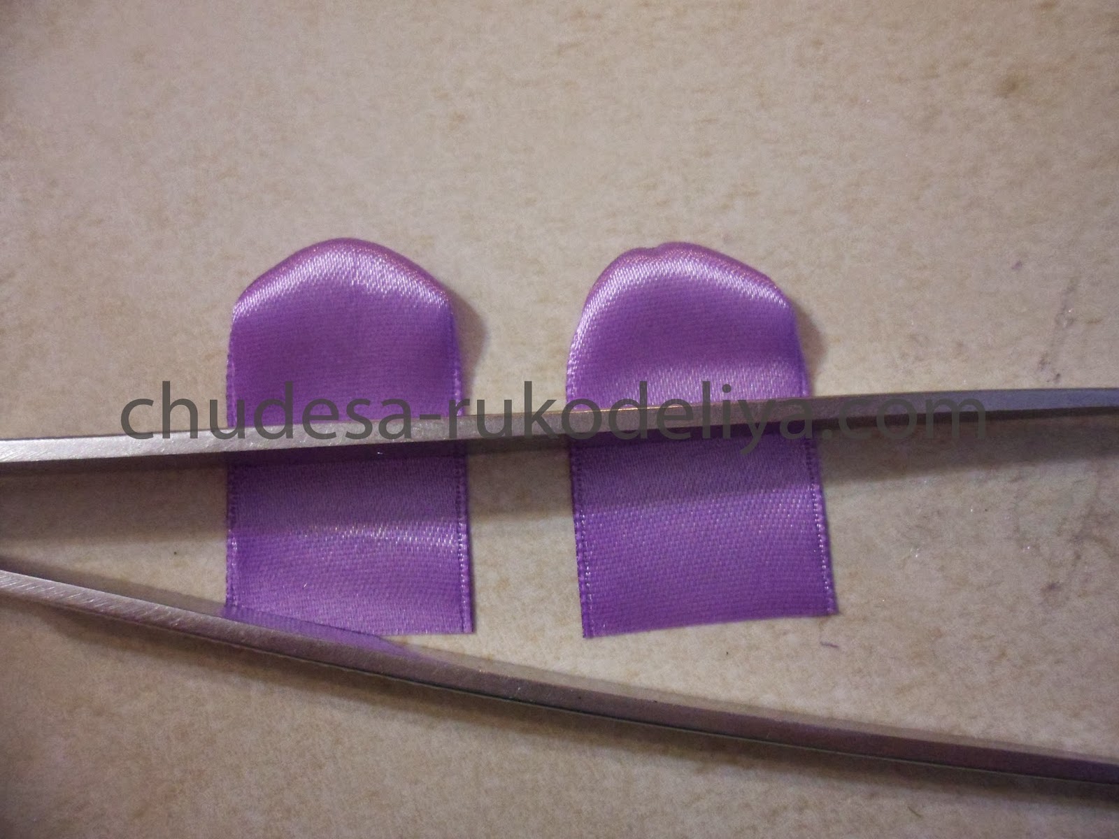 Для среднего слоя нашей дюшески я выбрала ленту светло-фиолетового цвета длиной 4,5 см-10 шт.