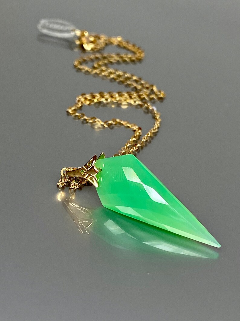 Хризопраз – один из самых необыкновенных драгоценных камней. Со времен античности хризопраз почитался как камень счастья и удачи. Сам Александр Македонский носил хризопраз на пряжке ремня во всех военных походах, веря, что он принесет ему победу и убережет от вражеского меча.