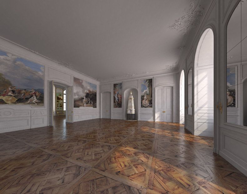 Правда, замок был роскошный, всё было в золоте, главный зеркальный Губертус-зал в длину был такой же как в Версале, а в ширину на 0,5 метра шире. Двор на период охоты переезжал из Дрездена в Вермсдорф и жизнь здесь кипела с 1752 по 1756 гг., вплоть до начала Семилетней войны (1756–1763). То как размещался двор в те времена можно увидеть на рисунке